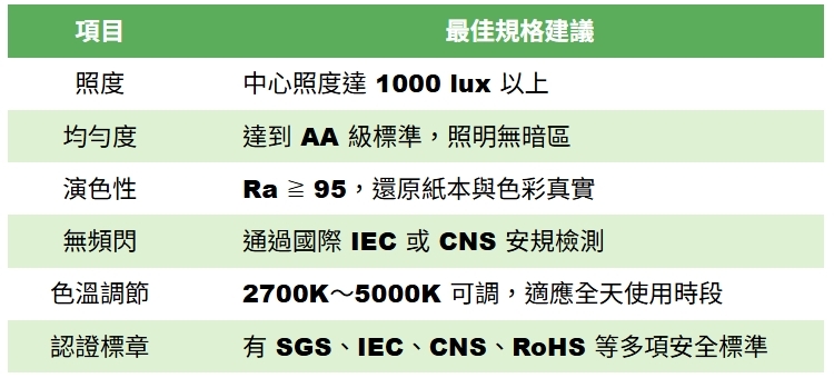 選擇照明設備時,不該僅依外觀與功能判斷,更應重視是否符合護眼標準與實際用途需求。